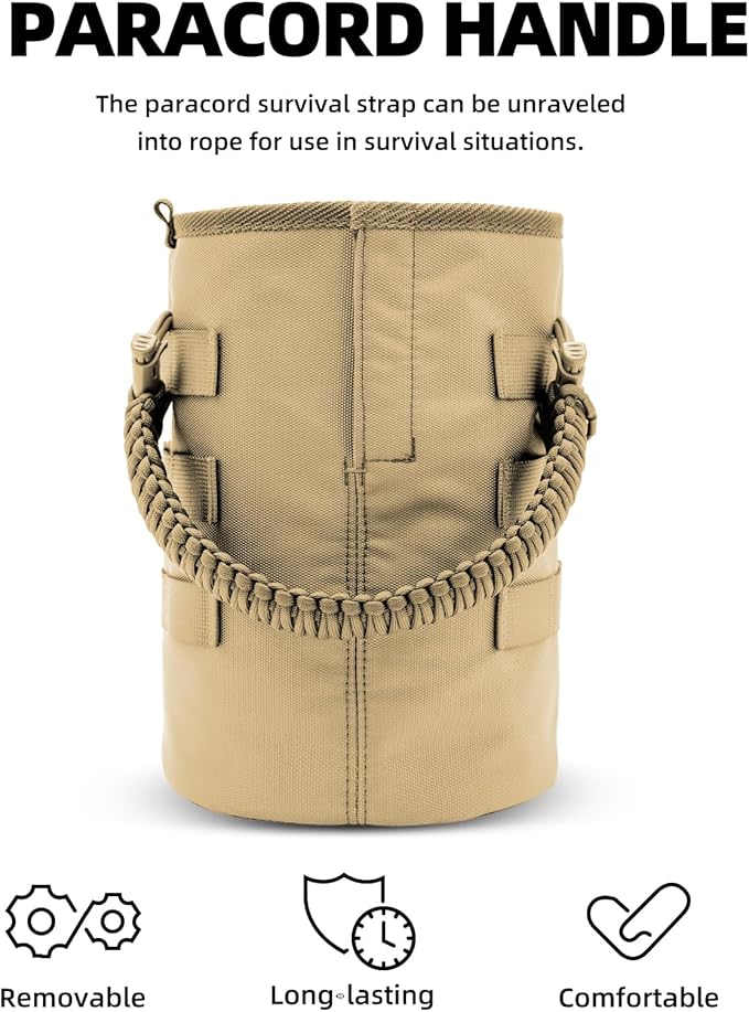 - Multiple Carrying Option:The tactical water bottle holder is equipped with two MOLLE back straps featuring metal snaps, allowing it to be securely attached to MOLLE-compatible gear such as backpacks or battle belts. It also includes a sturdy hook, ideal for holding keys or other small tools