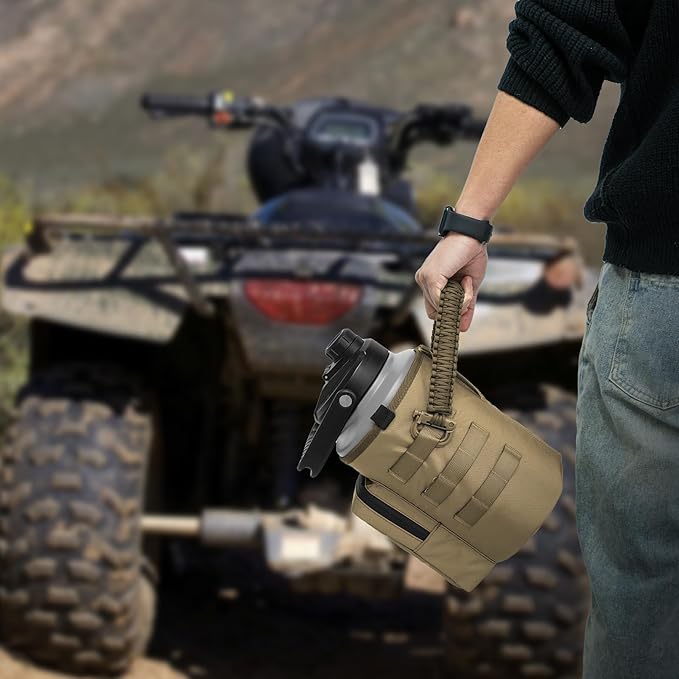 - 1000D Upgraded Material - It utilizes 1000D nylon fabric renowned for its exceptional wear resistance, boasting a tearing strength of up to 40Kg, heat insulation, and durability. Available in three sizes: 32 oz water bottle carrier, 64 oz water bottle carrier, and 128 oz water bottle carrier