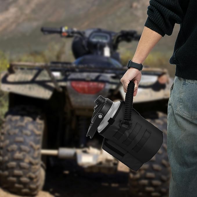 - 1000D Upgraded Material - It utilizes 1000D nylon fabric renowned for its exceptional wear resistance, boasting a tearing strength of up to 40Kg, heat insulation, and durability. Available in three sizes: 32 oz water bottle carrier, 64 oz water bottle carrier, and 128 oz water bottle carrier