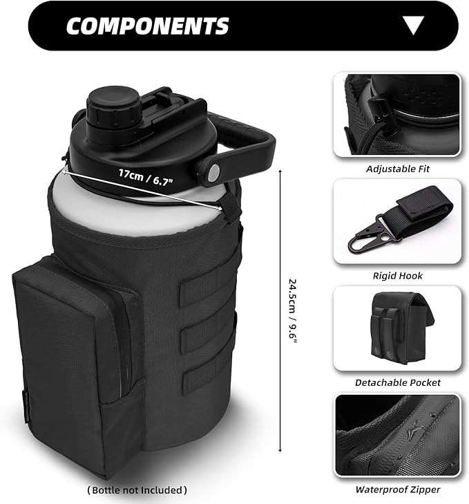 Water Bottle Holder Bag with Molle Strap - Water Bottle Carrier Pouch for Walking, Gym, Camping, Fishing, Hunting 32oz, 64oz, 128oz One Gallon Tactical Carrier Holder