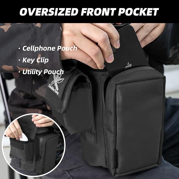 • Two Pocket Design:The large pocket features waterproof zippers, accommodating items like a 7-inch phone and cards securely within a dedicated water bottle pouch sleeve. The small, detachable pocket is ideal for carrying essentials like keys, cash, and small tools, offering both convenience and flexibility