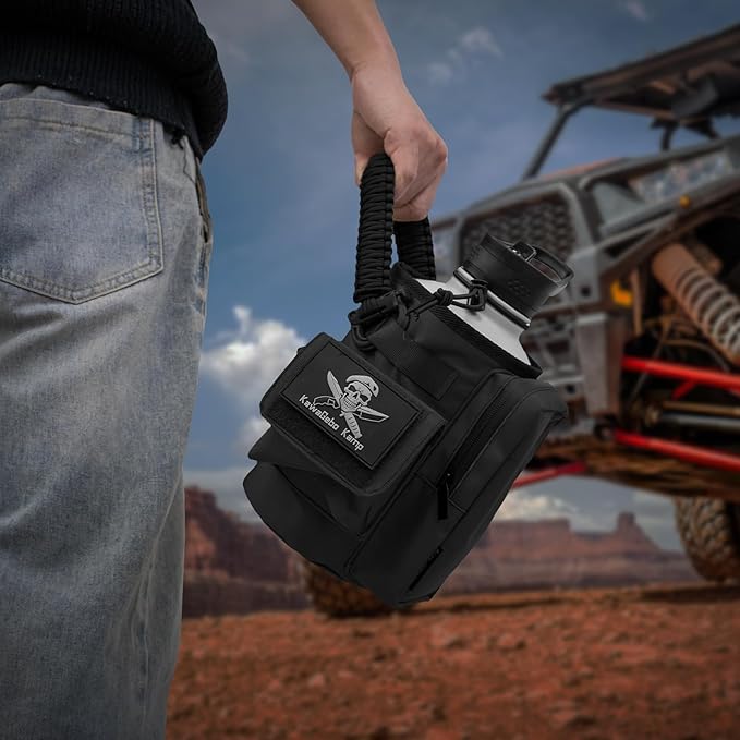 • 1000D Upgraded Material - It utilizes 1000D nylon fabric renowned for its exceptional wear resistance, boasting a tearing strength of up to 40Kg, heat insulation, and durability. Available in three sizes: 32 oz water bottle carrier, 64 oz water bottle carrier, and 128 oz water bottle carrier
