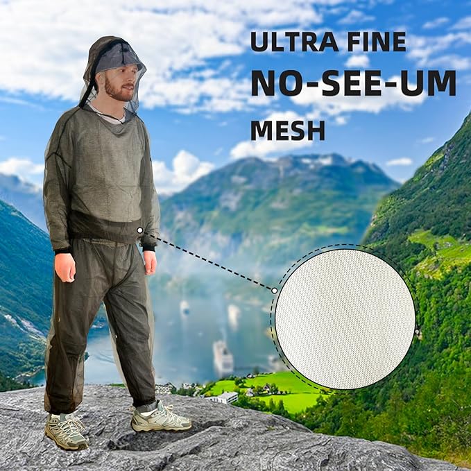 - Convenient Design, Easy to Use: The mosquito jacket features a fully zippered head cover for quick access to meals or drinks, with elastic openings that snugly fit wrists, waist, and ankles, eliminating the need for constant adjustments.