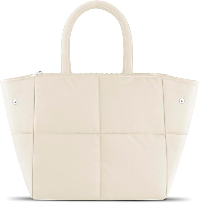 Coobiiya Stylish Lunch Box Lunch Bag for Women Men, Ultralight Thickened Leakproof Quilted Puffer Lunch Cooler Tote, Adult Small Cute Reusable Insulated Lunch Box for Work, Office, Travel (White)