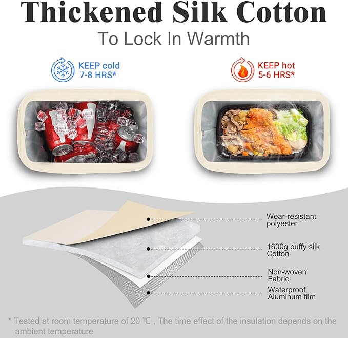 - Thickened Sturdy Lunch Tote: Insulated lunch tote features a thickened anti-collision lining, preventing food from being bumped or spilled. Its aluminum lining, made with advanced voltage technology, ensures leak-proofing, Sturdy, and easy maintenance for daily use
