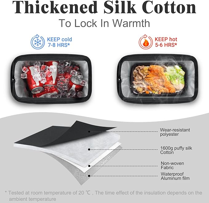 - Thickened Sturdy Lunch Tote: Insulated lunch tote features a thickened anti-collision lining, preventing food from being bumped or spilled. Its aluminum lining, made with advanced voltage technology, ensures leak-proofing, Sturdy, and easy maintenance for daily use