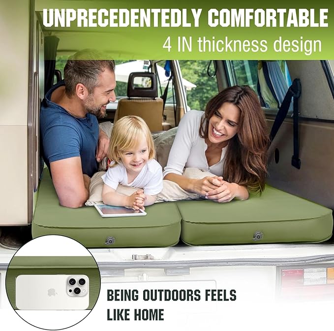- Silent Sleep, No Disruptions: Our camping sleeping pad features a premium stretch-knit fabric surface that delivers whisper-soft comfort and minimizes noise. Unlike other air mattresses that squeak with every move, our design ensures you can roll, shift, or turn without disturbing your partner or tent mates. Perfect for light sleepers, families, or anyone who values true peace during outdoor adventures. Whether you're in a tent, a car, or hosting overnight guests, you'll experience deep, silent sleep like never before