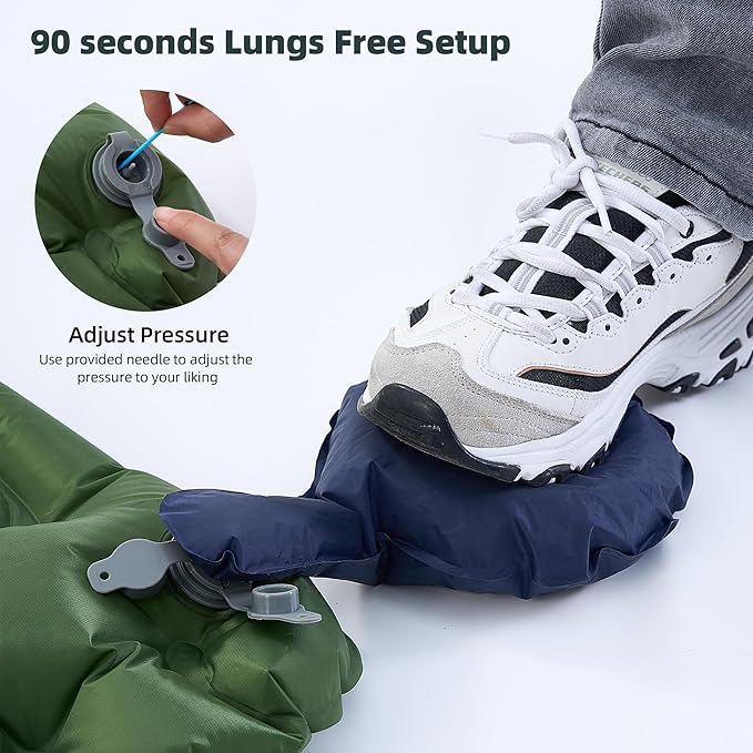 - ๐๐ ๐ฌ๐๐๐จ๐ง๐๐ฌ ๐๐ฎ๐ง๐ ๐ฌ ๐ ๐ซ๐๐ ๐๐๐ญ๐ฎ๐ฉ: Coming with a small detachable foot pump sack and a smart Anti-Leak Valve System for easy inflation and deflation. It takes under 90 seconds to โInflate > Adjust > Seal > Deflate.โ Inflate this air mattress camping essential with the detachable foot pump for maximum convenience. This inflatable sleeping pad for camping ensures a lung-free, cozy setup in any terrainโ๐ณ๐๐ ๐๐๐๐ ๐๐๐๐ ๐ ๐ ๐๐๐ ๐๐๐๐ , ๐ช๐๐๐๐๐๐ ๐ป๐๐๐ ๐บ๐๐๐๐๐ ๐๐ ๐บ๐๐๐๐๐ ๐.