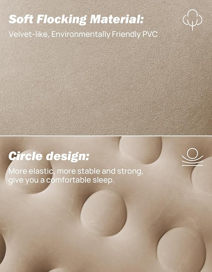 - 【Cavity Design】: Featuring three independent air chambers, our design significantly reduces the risk of air leakage while enhancing durability and longevity. The surface and pillows are crafted from a soft, velvet-like flocking fabric for a plush feel, and the high-quality PVC bottom helps prevent leaks.