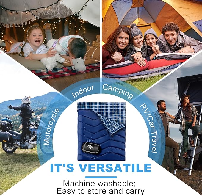 - 【3-in-1 Versatile Functionality】 This innovative xl adults sleeping bag converts into two separate sleeping bag or 2 blankets for flexible usage scenarios. The dual-zipper system features a bottom ventilation zipper for temperature control for added comfort. Whether you're craving a spacious double sleeping bag to weather chilly nights or need two separate pads for backpacking trips, this versatile design effortlessly caters to all your outdoor needs.