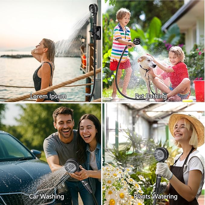 • 【Multi-purpose Use】 Suitable for camping, RV travel, beach, swimming pool, pet bathing, car washing and other scenarios. No matter where you are, you can easily enjoy the fun of showering.
