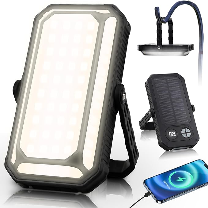 - LCD Display &IPX4 WEATHERPROOF - The camping lantern has a digital display of power, which can easily obtain power information, which is of great significance for camping activities and daily use. The camping lantern is IPX4 waterproof, the outdoor solar light is dustproof, windproof, and can provide steady light no matter what the weather. Rain or shine, it will stay bright and ready for any adventure.