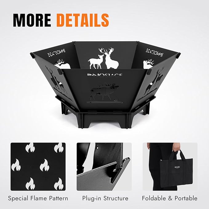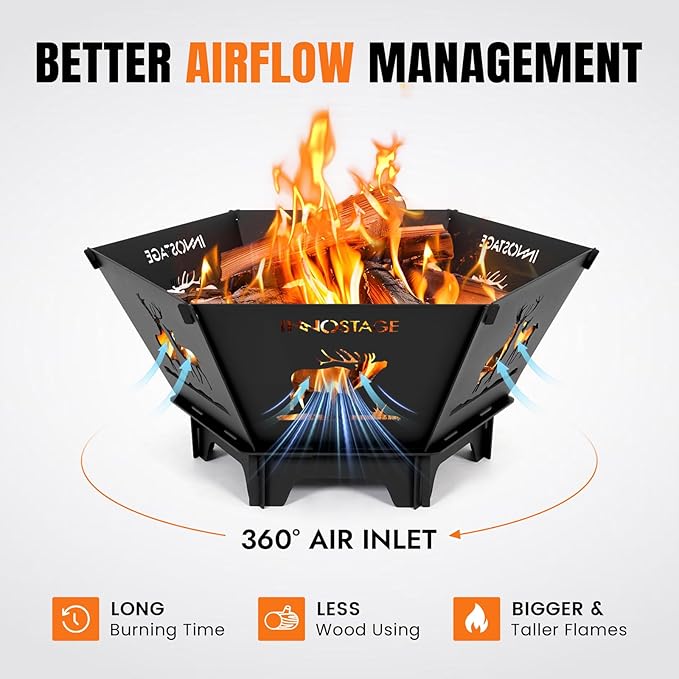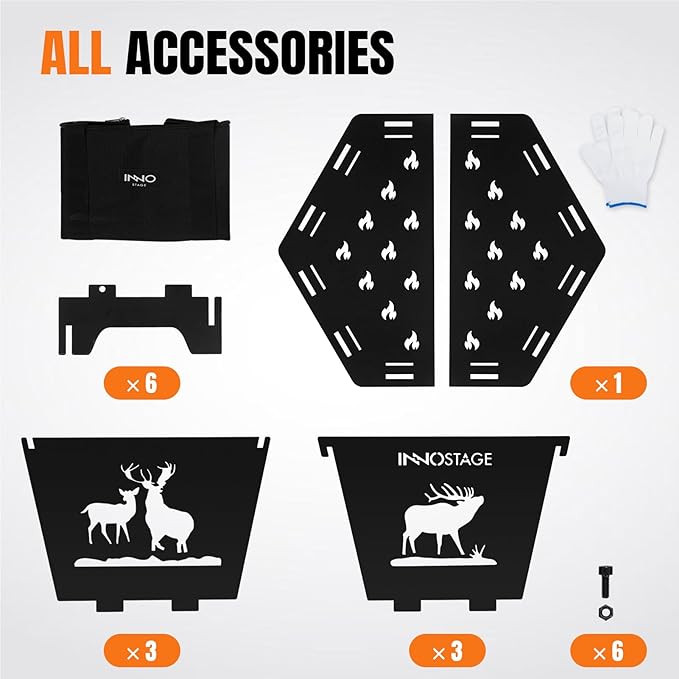 - Dancing Flames: The 6 side plates come in 2 different patterns, the hollowed deer design allows the flames to flicker and create a cozy and romatic atmosphere. This enhances the camping experience and appeal. The patio fire pit is ideal for use with 4-6 people.