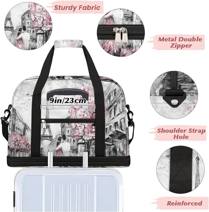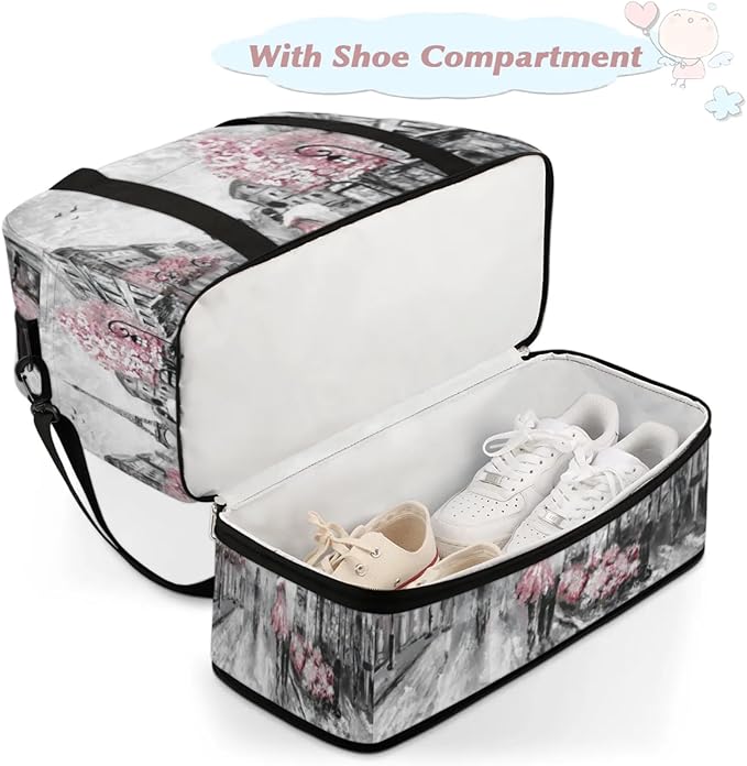 Eiffel Tower Foldable Travel Duffel Bag, Expandable Sports Gym Bag with Shoes Compartment Weekender Overnight Totes Bags for Women Men