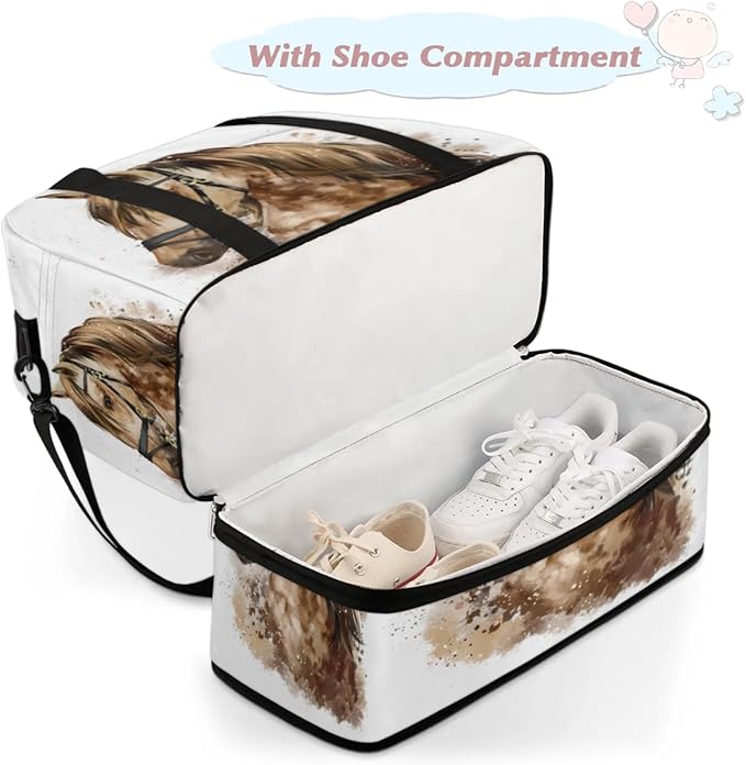 Horse Head Foldable Travel Duffel Bag, Expandable Sports Gym Bag with Shoes Compartment Weekender Overnight Totes Bags for Women Men
