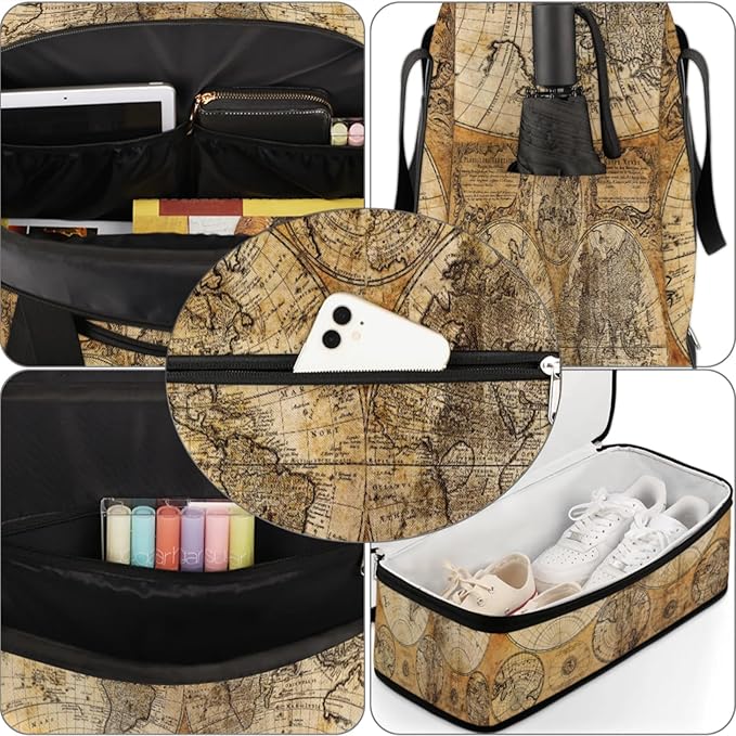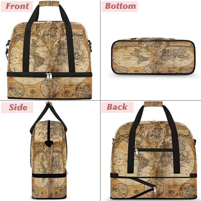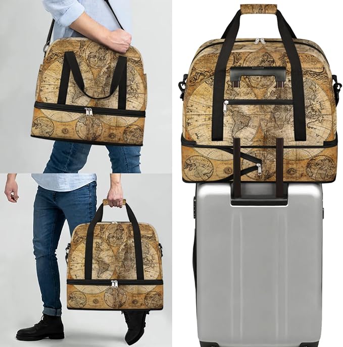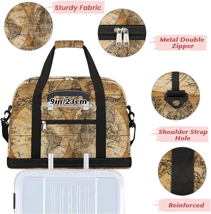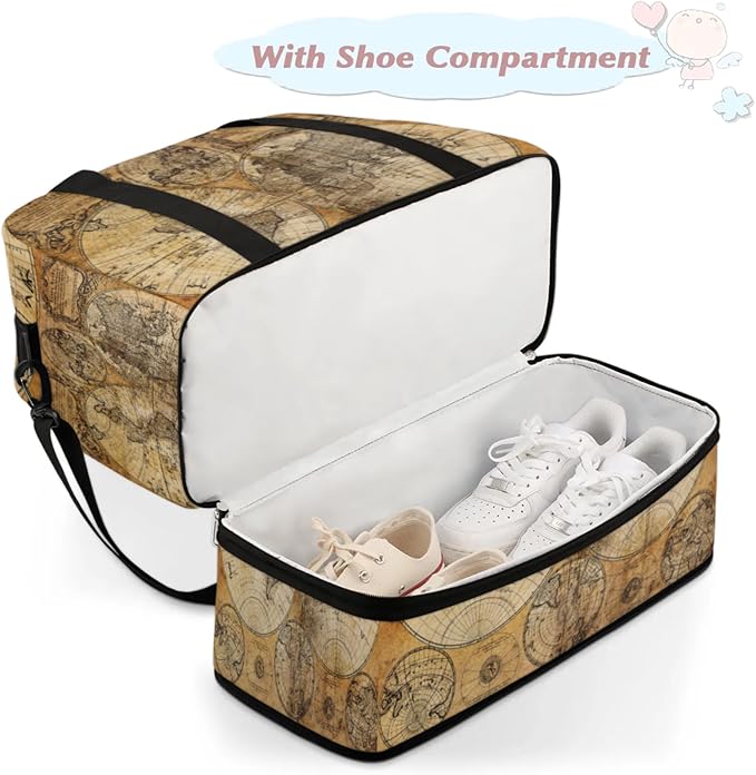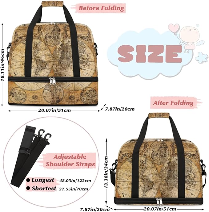 World Map Foldable Travel Duffel Bag, Expandable Sports Gym Bag with Shoes Compartment Weekender Overnight Totes Bags for Women Men