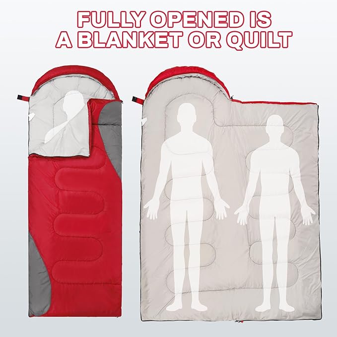 - Spacious & Comfortable: With dimensions of 31.5" x 86.6", this sleeping bag comfortably fits a 6ft adult. The skin-friendly polyester fabric is soft, breathable, and designed for a comfortable night's sleep, whether you're indoors or enjoying the great outdoors, ideal for camping, hiking, and traveling. Fully open the sleeping bag and it transforms into a blanket or quilt, making it versatile for various camping needs, or as an emergency blanket for your vehicle
