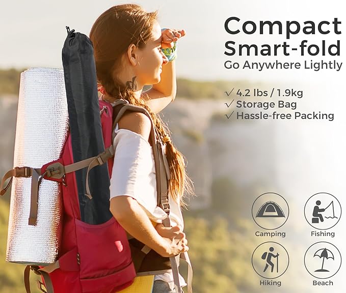 - 【Backpack-Friendly Portability】Includes carry bag (fits most backpack sides) - Perfect for camping, picnics, fishing & hiking at 4.2lbs.