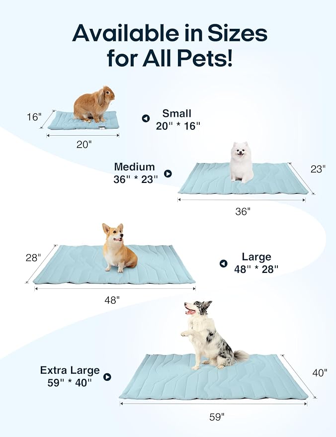 - EFFORTLESS MAINTENANCE, LASTING PERFORMANCE: Cleaning our dog cooling pad is a breeze. Simply toss it in the washing machine and air dry or dry it at low temperature for a quick refresh. Thanks to its durable construction, it withstands repeated washing cycles while maintaining its exceptional cooling performance. Enjoy peace of mind knowing your pet's comfort is always at its best.