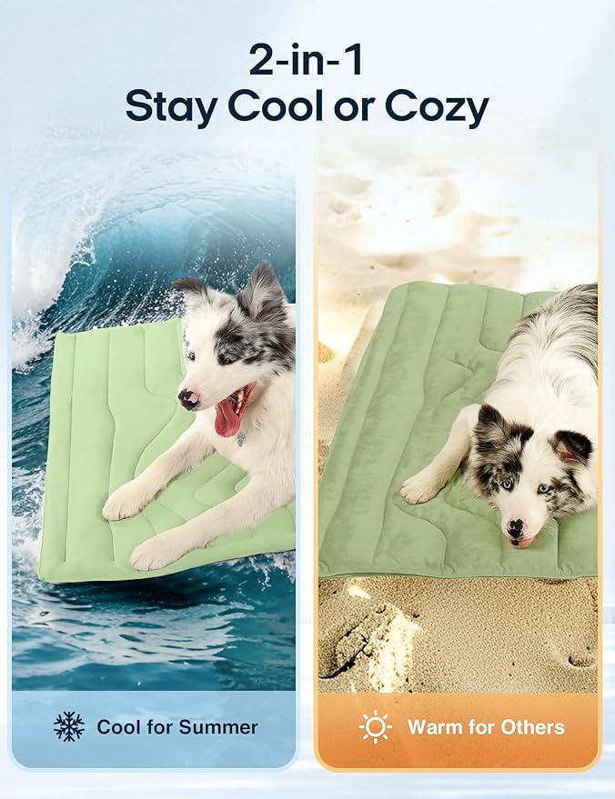 ZonLi Dog Cooling Mat, 48" x 28"Large, Reversible Cooling Pad for Dogs & Cats (Cool & Warm), Durable & Machine Washable, Pet Mat for Crate, Kennel, Bed, Sofa, Sage Green