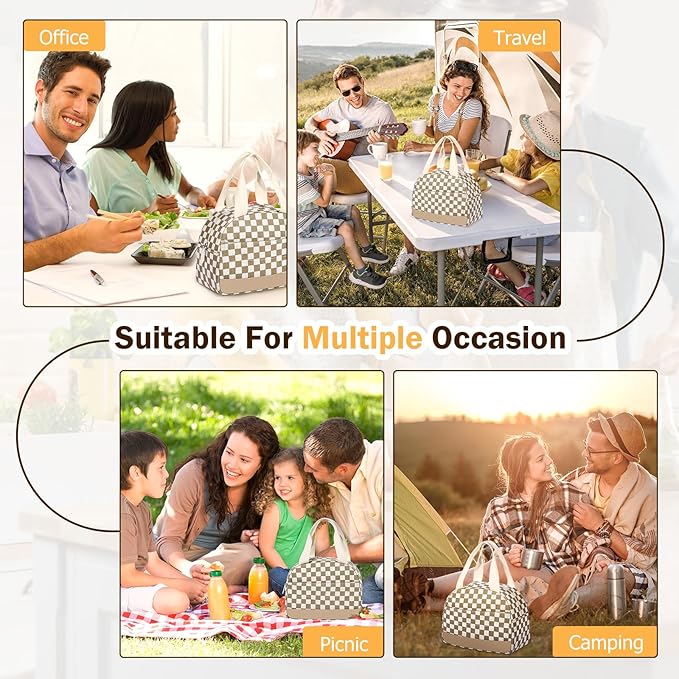 - 【Wide Use Lunch tote】Beige Lunch box for women Can be used as a reusable lunch bag, grocery bag or shopping bag. Perfect for office, travel, work, picnics, beach outings, hiking and fishing.