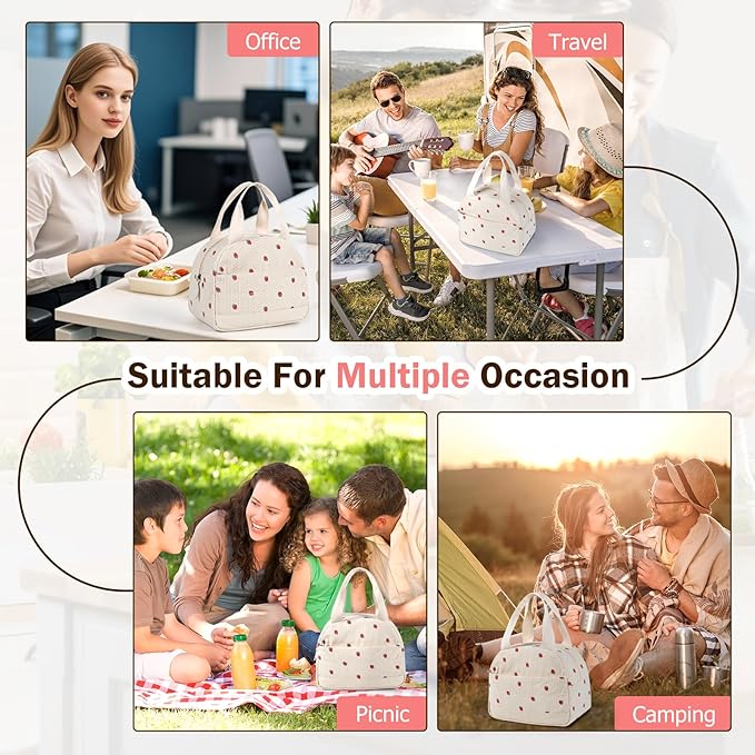 - 【Wide Use Lunch tote】Beige Lunch box for women Can be used as a reusable lunch bag, grocery bag or shopping bag. Perfect for office, travel, work, picnics, beach outings, hiking and fishing.