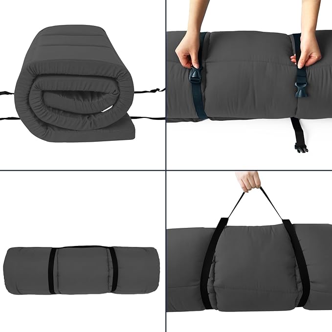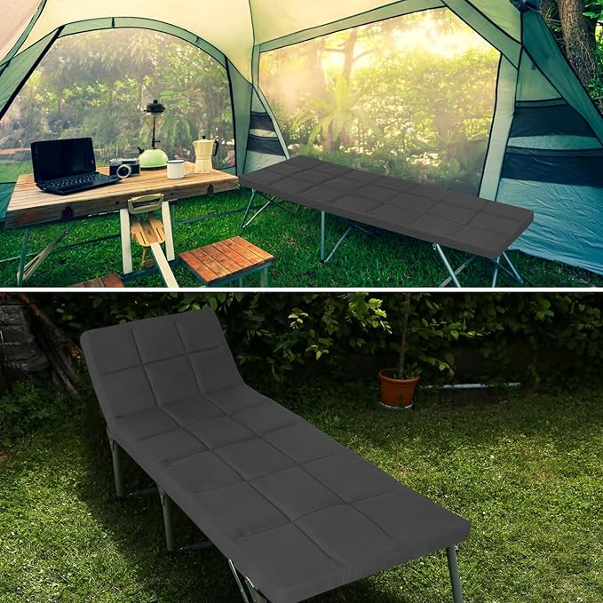 • Perfect Size & Moderate Filling: The camping cot pad open size is 75"x30"x2", wider and much thicker than usual, more comfortable to use together with the camping cots or lounge chaise chairs. Camping mattress pad for sleeping are filled with reasonable amount of polyester fiber which offers your the support during rest, along with the right softness and comfort, too.