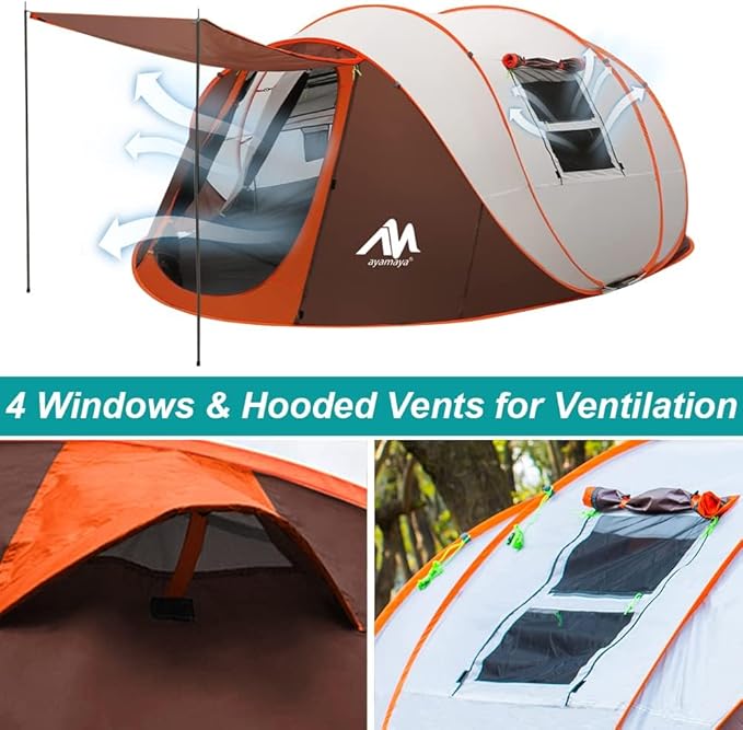 6 Person Easy Pop Up Tents for Camping - AYAMAYA Double Layer Waterproof Instant Tent with Vestibule & Porch, Large Size Family Tent Automatic Setup for 4-6 People Camping Hiking (Poles Included)