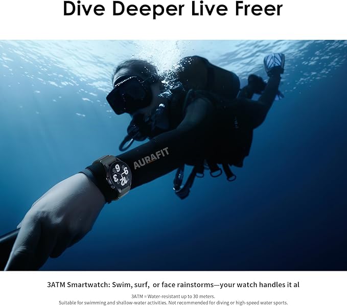 - 3ATM Waterproof Fitness Tracker: Swim, surf, worry-free! Engineered with 3ATM water resistance (30 meters), this smartwatch withstands rain, handwashing, and recreational swimming.