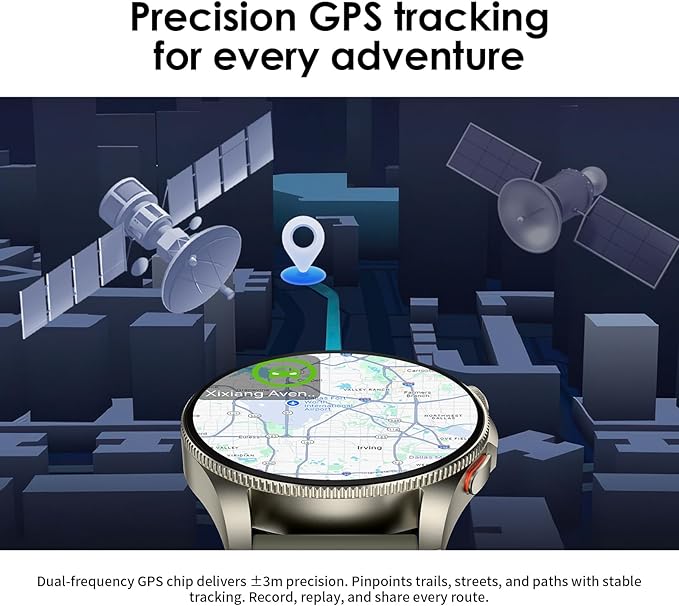 - Multi-Sport GPS Smartwatch with 5 Satellite Support – Outdoor Adventure Ready: Track adventures precisely with built-in GNSS chip supporting GPS/GLONASS/Galileo/BeiDou/QZSS systems. Perfect for hiking, running, cycling, and outdoor exploration. The tracker watch also includes an internal compass.