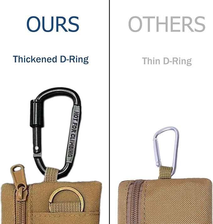 - 【Premium D-Ring & Durable Material】Crafted with 1000D tear-resistant nylon and reinforced stitching, these tactical EDC pouches are built to endure rugged use. The upgraded D-shaped buckle features enhanced hardness and corrosion resistance, ensuring secure attachment to belts, backpacks, or MOLLE gear.