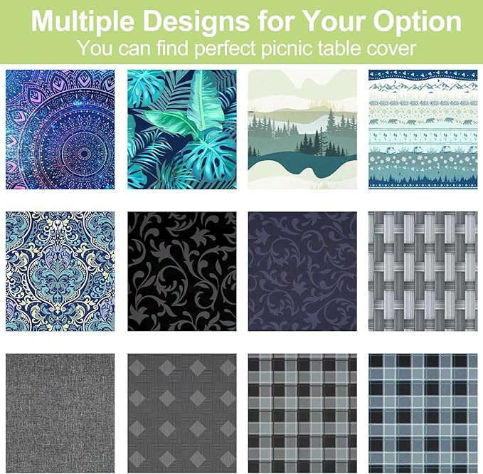 - 【EASY INSTALL & WINDPROOF】Both table cover and bench cover designed with half around elastic, not only can prevent unexpected movements and stay firm in windy conditions, but also easy to install and uninstall by yourself, so your happy picnic time won't be disturbed.