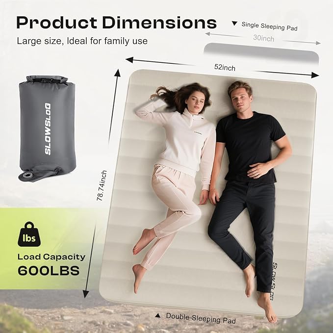 - Superior Comfort: This double sleeping pad features 4-inch thickness and supports up to 660 lbs, delivering unmatched comfort for side sleepers and campers. The advanced air-foam hybrid design evenly distributes weight while preventing bottoming-out, ensuring pressure-free rest
