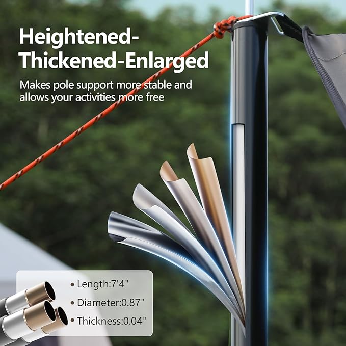 - Easy Set Up: No specialized knowledge is required. Even beginners can easily set up the camping shade according to our product manual and the extra retainer, and quickly enjoy the joy of camping! The package comes with two thickened poles, of which the height can be adjusted from 30.9" to 88.7" Customize your shade structure by adjusting the pole height and placement, creating the perfect rain canopy for your needs