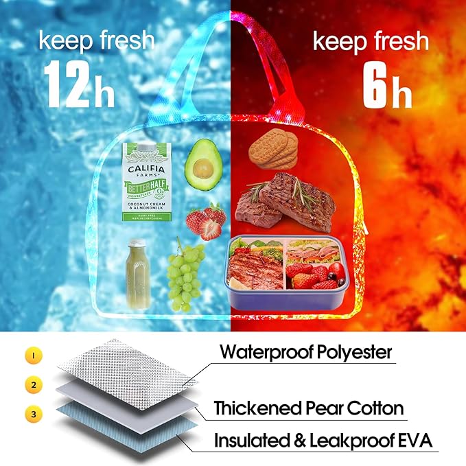 - MULTIFUNCTIONAL DESIGN: Daily lunch bag, grocery bag, cooler bag, shopping bag, picnic bag and cosmetic bag, suitable for kids, adults, students, office workers, men and women. Stylish lunch box suitable for various occasions including school, office, work, travel, picnic, outdoor beach and at the outside.