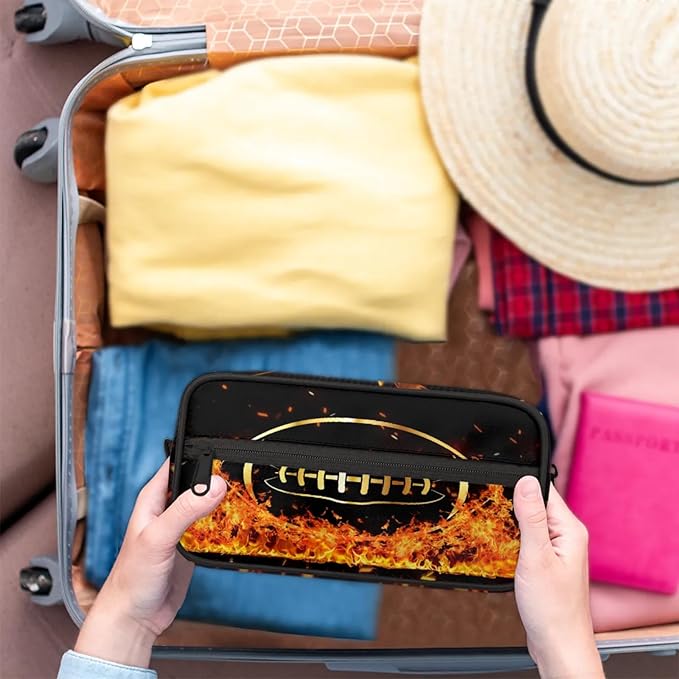 Rugby in Fire Boys Toiletry Bag for Kids Dopp Kit Waterproof Hanging Wash Bag Cosmetic Bag Medicine Bag for Travel Sports Shower Essential