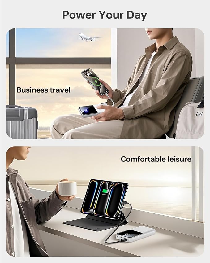 - Wide Compatibility battery pack with 2 Built-In Cables: This portable charger comes with integrated cables for Type C, iOS, and 3 input ports (Micro USB, Type-C, USB-A), ensuring compatibility with a wide range of devices like iPhone 17/17 Pro/ 17 Pro Max/17 Air/16/16 Pro/16 Pro Max/15/15 Pro/15 Pro Max/14/13/12, Samsung Galaxy, Google Pixel, tablets, iPad series, earbuds, smartwatches, and and other Android, tablets.