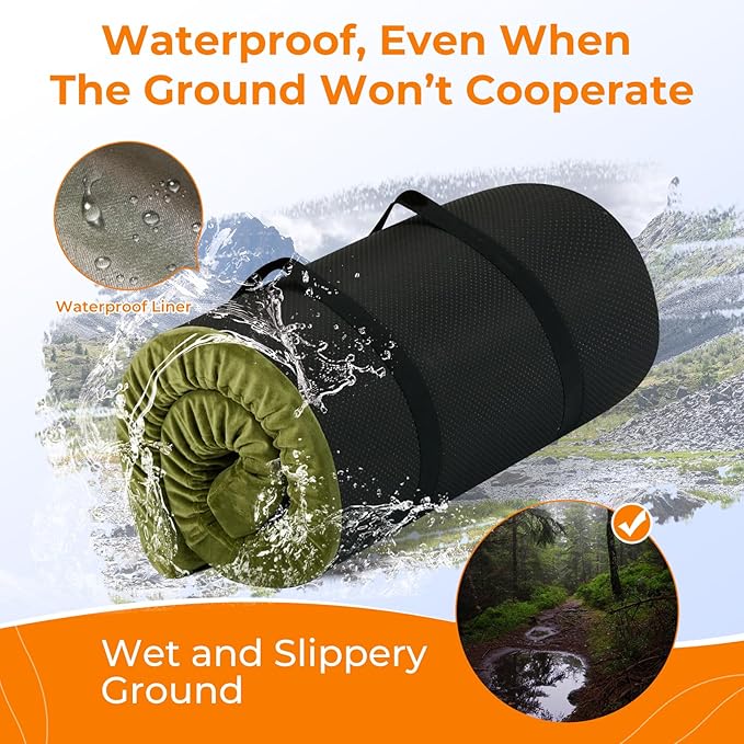 - All-Terrain Waterproof Design: The camping mattress pad features a removable washable cover with durable zip for easy cleaning and a textured non-slip base that works on wet tent floors or rocks. Waterproof velvet like plush fabric cover and non-slip textured base stays put on wet grass/tent floors while roll-up straps enable compact storage.
