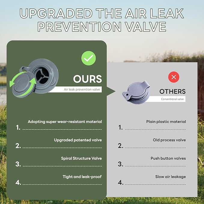- 🛡️【40D Nylon & Super Durable】Camping sleeping pad made of outdoor grade material 40D nylon, providing extreme pressure-bearing and durability. The edge of the camping mat is heat-sealed, so you don't have to worry about air leaks or tears, even under harsh conditions.