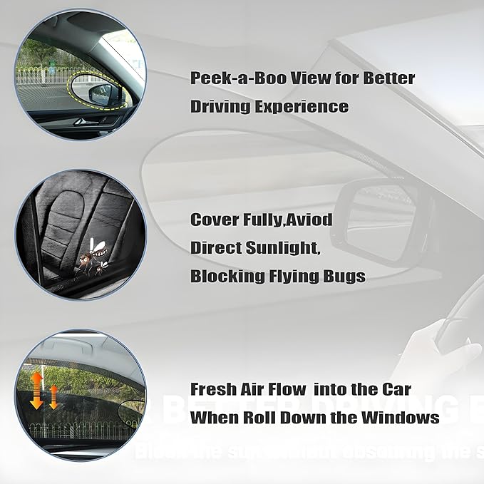 - UPGRADED UV,BUGS AND MOSQUITO PROTECTION: Our car window screen shade is made from durable nylon mesh that is breathable, stretchable, and provides complete privacy blackout. Designed to keep your children from UV, Bugs and Mosquito, it's also a great car window screen for camping.