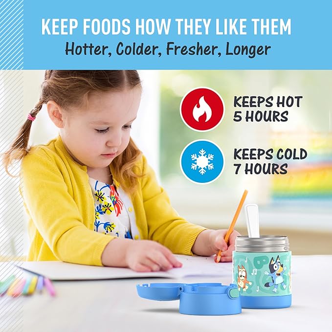 THERMOS FUNTAINER Insulated Food Jar, 10 Ounce, Kid Friendly Food Jar with Foldable Spoon, Bluey