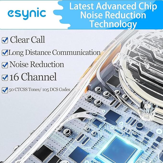 - *📡 STRONGER SIGNAL, WIDER RANGE*----: Our eSynic Long Range Walkie Talkies Set "FRS462 License-free Frequency + 50 CTCSS Tones Cuts Through Interference in Warehouses, Forests, or Crowded Events. Upgraded Antenna Up to 5KM/3 Miles Talking and Delivers 30% Clearer Reception vs. Standard Radios (Tested in Real-world Conditions).