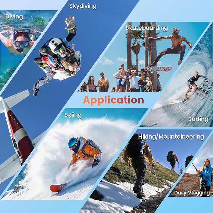 - 4K Ultra HD Video Action Camera: The action camera captures stunning 4K video at 60fps, offering four times the detail of Full HD (1080p) footage. The higher frame rate ensures smoother motion in fast-paced scenes, while also allowing you to capture clear 48MP photos. Equipped with a 64GB memory card and two 1350mAh batteries, each providing up to 85 minutes of power, you can shoot without worrying about storage and battery life. Ideal for fishing, snorkeling, motorcycle, skiing, bike , travel, rock climbing, skateboarding, skydiving, other outdoor adventures.