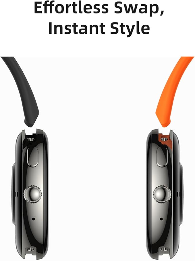 - 【ONE-CLICK QUICK RELEASE & DUAL-COLOR STRAPS】Switch your style in seconds with our innovative one-click quick release design. Comes with two liquid silicone straps—classic black for everyday wear and vibrant orange for a bold fashion touch. Soft, breathable, hypoallergenic, and ultra-comfortable—feels like a second skin. Parsonver is dedicated to wearability so seamless, you’ll forget it’s on. Dual buttons and a rotating crown for effortless control.