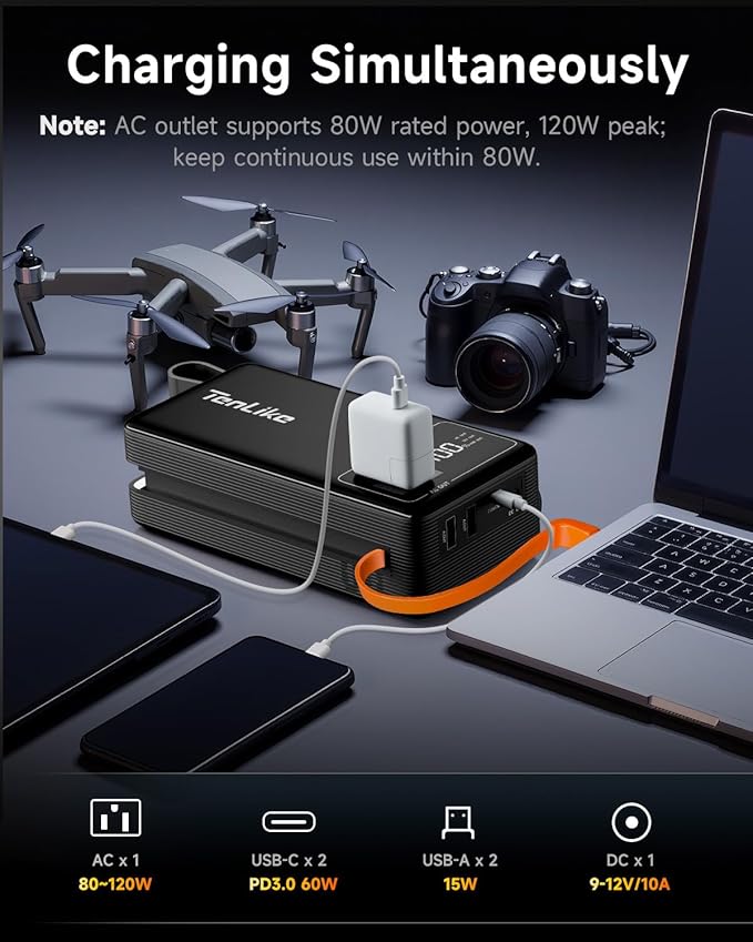 - 【99.9Wh High-Capacity Battery】With an impressive 99.9Wh battery capacity, our Tenlike portable power station ensures that you can keep your devices powered for extended periods, whether you’re camping, traveling, or facing a power outage at home. Note: 99.9Wh is the maximum capacity allowed by airlines