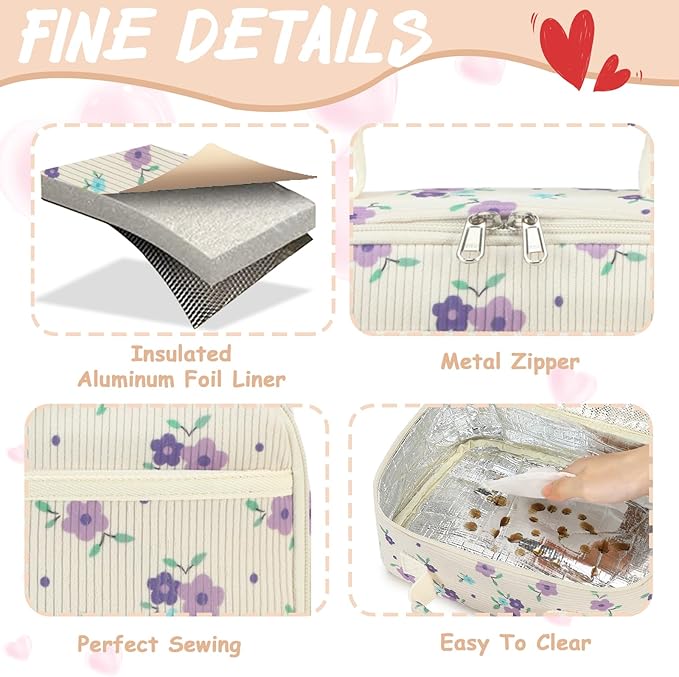 - Wide open zipper for the kids lunch bag make it easier for the little one to manage mealtime on their own; Made of durable waterproof corduroy fabric, quality zippers and thick aluminum inner (BPA free) to ensure your little one's lunch does not get crushed; Easy-wipe interior make cleanup a breeze.