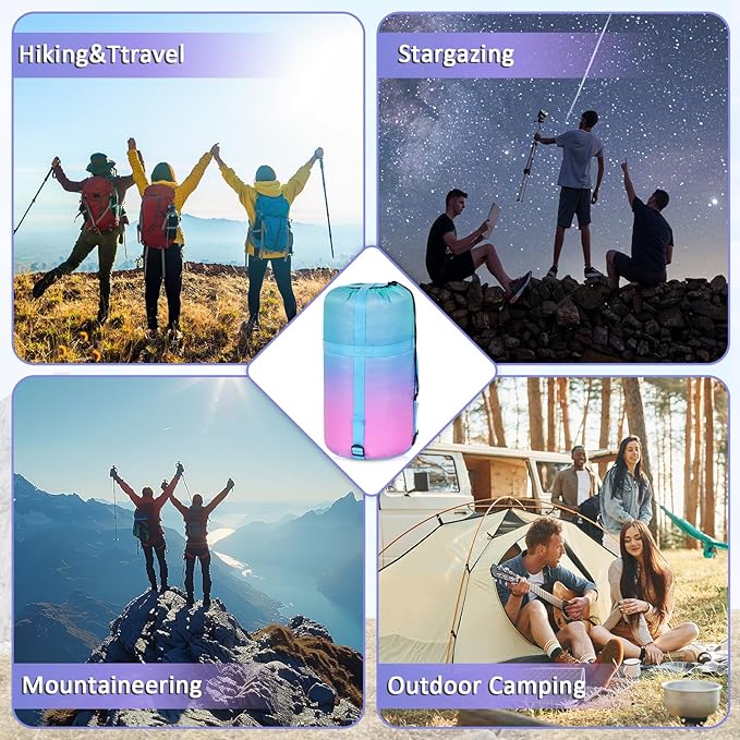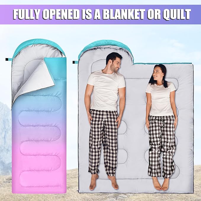 - Thoughtful Design: This sleeping bags for adults is closed from the side to the bottom with a zipper, and is equipped with a drawstring and Velcro to protect against wind and cold, and can also be fully opened to be used as a blanket for picnics or playing, commonly used in outdoor camping, hiking, backpacking, tents and indoor rooms