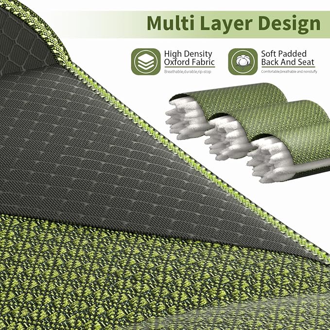 Heavy Duty Folding Chair 500LB Capacity, Oversized Camping Chairs with Cup Holder, Cooler Bag & Storage Pouch, Double-Layer Fabric, Outdoor Chairs for Sports, Lawn Chairs (1, Black Green, Extra Large)