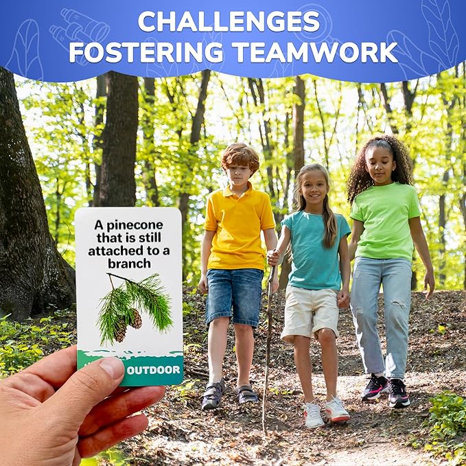 - 200 INDOOR & OUTDOOR GAMES: with 100 new double-sided scavenger hunt cards, treasure hunting for kids expands to exciting new challenges; Set offers extra fun to treasure hunt games for kids ages 6-8