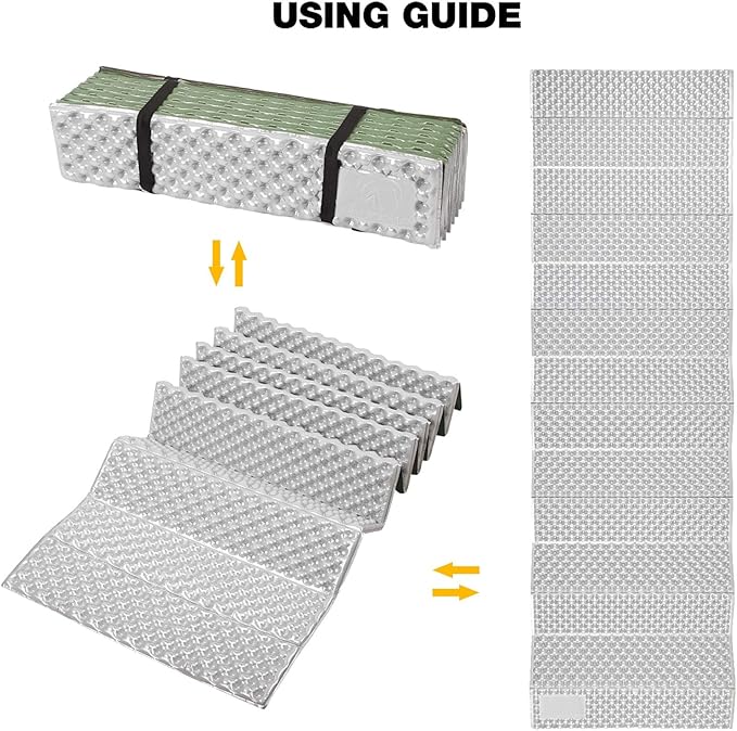 • Ultra-Portable for Demanding Adventures Weighing 480g , this pad folds to using a triple-panel accordion design, fitting seamlessly into backpacks. The non-slip textured surface stabilizes sleep positions in tents, and the tear-resistant foam supports up to 200 lbs without compression loss.